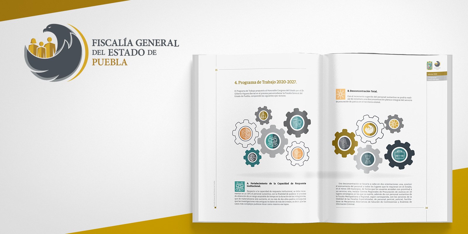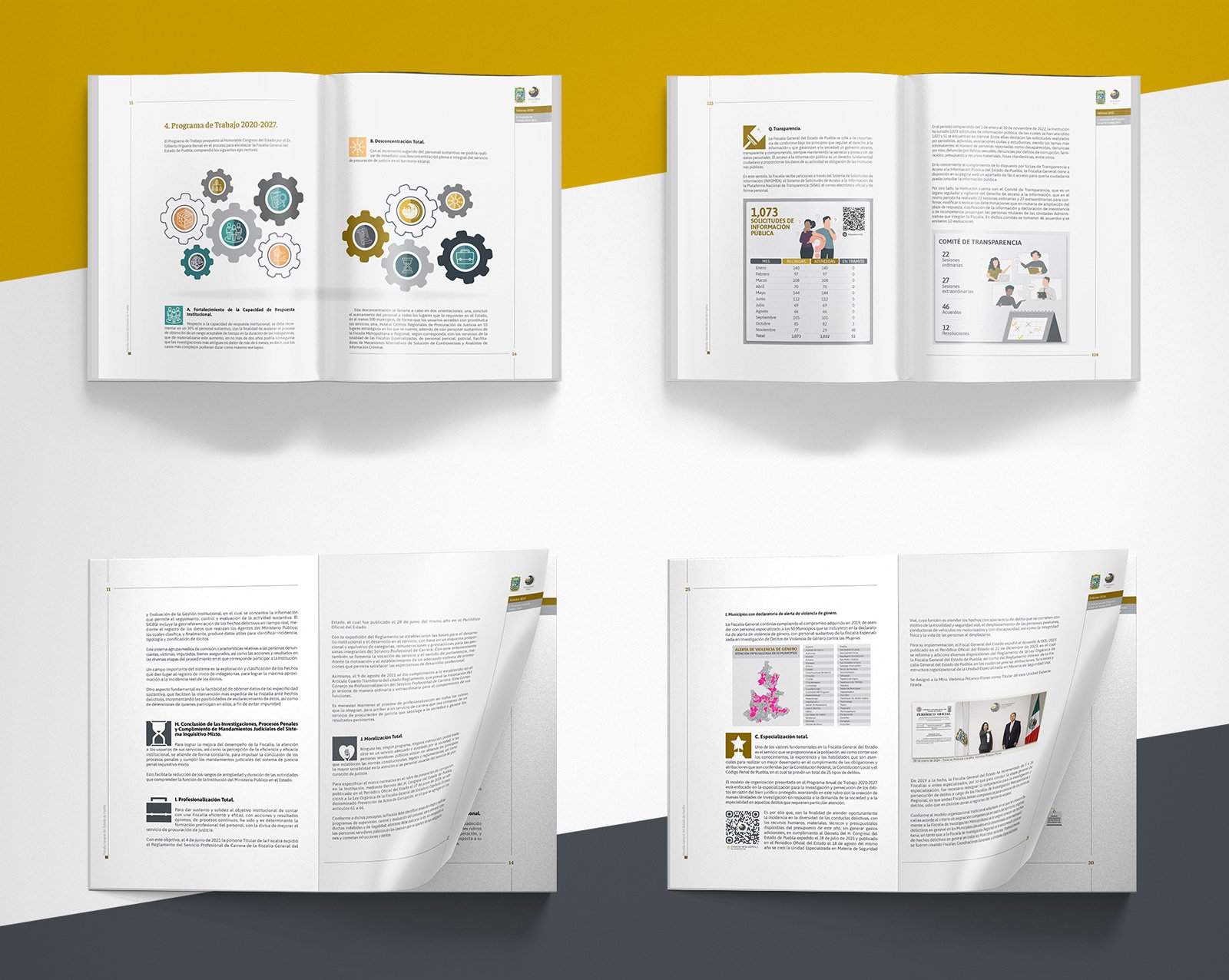 From 2020 to 2024, as a Technical Advisor at the Fiscalía General del Estado de Puebla, I was a key member of the creative team, specifically responsible for the annual report of activities. This project comprehensively compiled annual results, key statistics, and performance metrics.